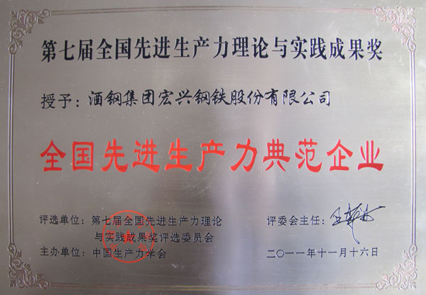 全國先進(jìn)生產(chǎn)力典范企業(yè)