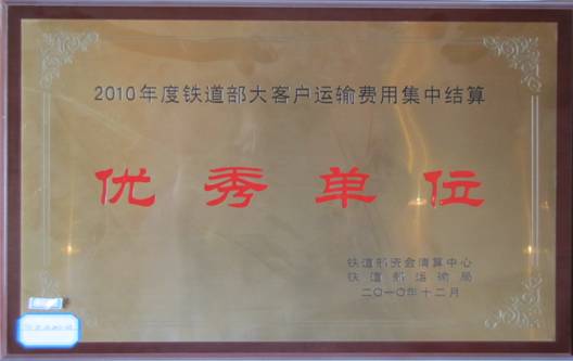 2010年度鐵道部大客戶運輸費用集中結(jié)算優(yōu)秀單位